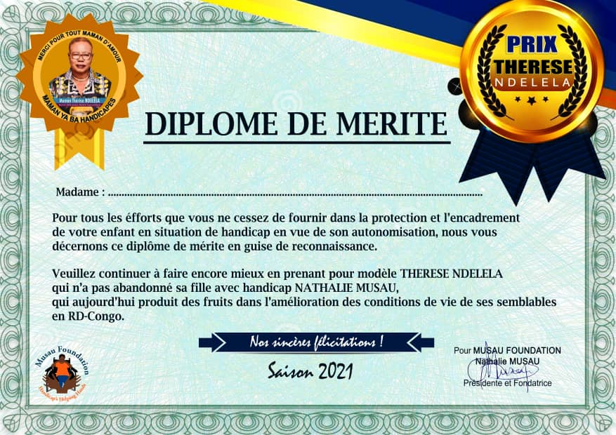 Le Prix Thérèse NDELELA a pour but d’honorer les mamans battantes et déterminées à rendre leurs enfants en situation de handicap, indépendants (es) et autonomes.